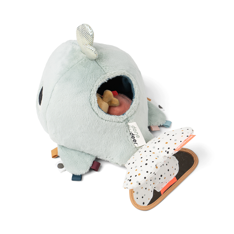 Hravá veľryba miluje plávanie a hranie sa na schovávačku. Držte krok s malými morskými kamarátmi a pozrite sa, ako sa rýchlo schovajú vo vnútri Wallyho. Každá rybka vydáva vlastný zvuk a povzbudí bábätka, aby sa za nimi plazili a prišli na to, ako sa tieto roztomilé rybky dostávajú dovnútra a von z Wallyho bruška. Dieťatko môže tak nahmatať rôzne textúry a objaviť aj skryté zrkadlo na Wallyho plutve. Aktívna hra na schovávačku pobaví batoľatá a rozvíja ich motorické schopnosti a koordináciu ruka-oko.